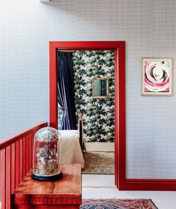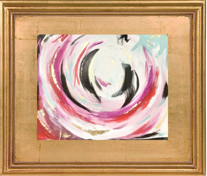 The painting of this print was created in 2022 and was inspired to create a piece of work that felt like a graffiti with my favorite colors. Each piece is painted with gilded gold paint to create the look of pops of gold leaf.